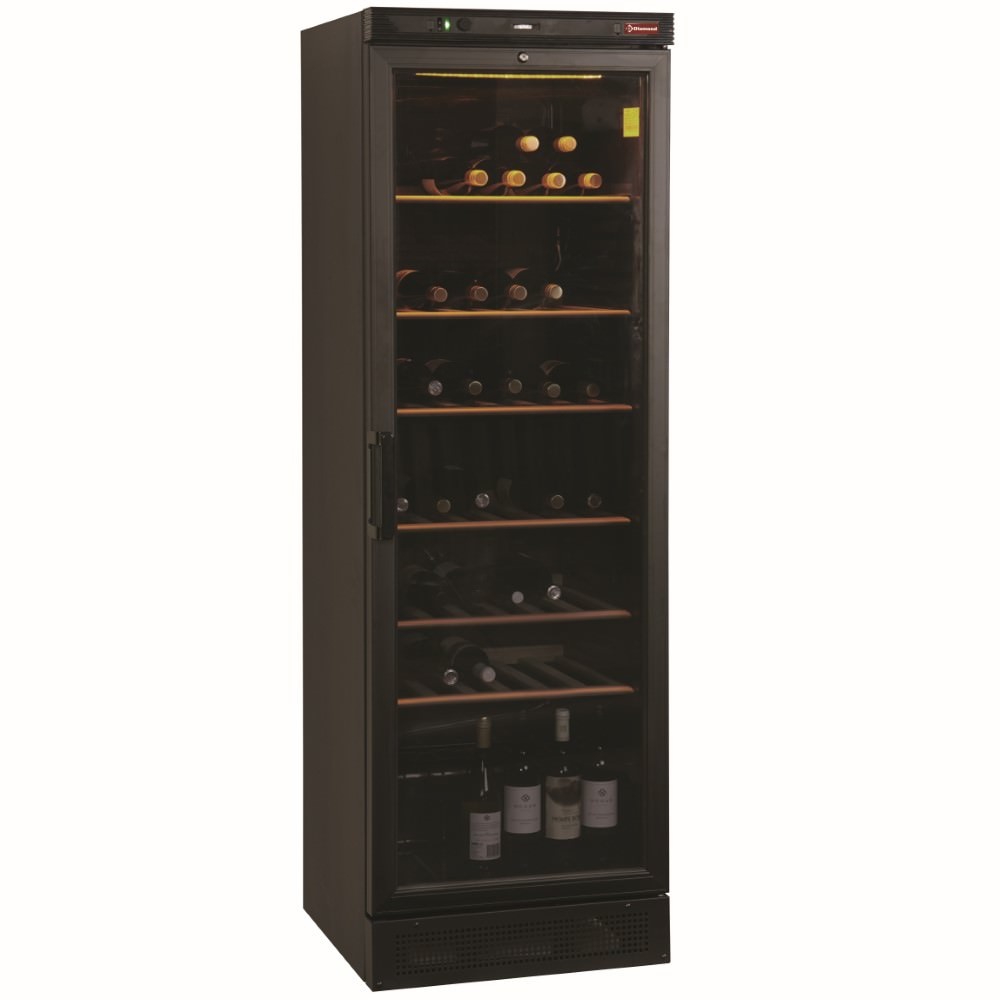 1-Door Wine Cooler 380 L, 90 Bottles, from 5 °C to 18 °C, Hinged Glass Door, Black