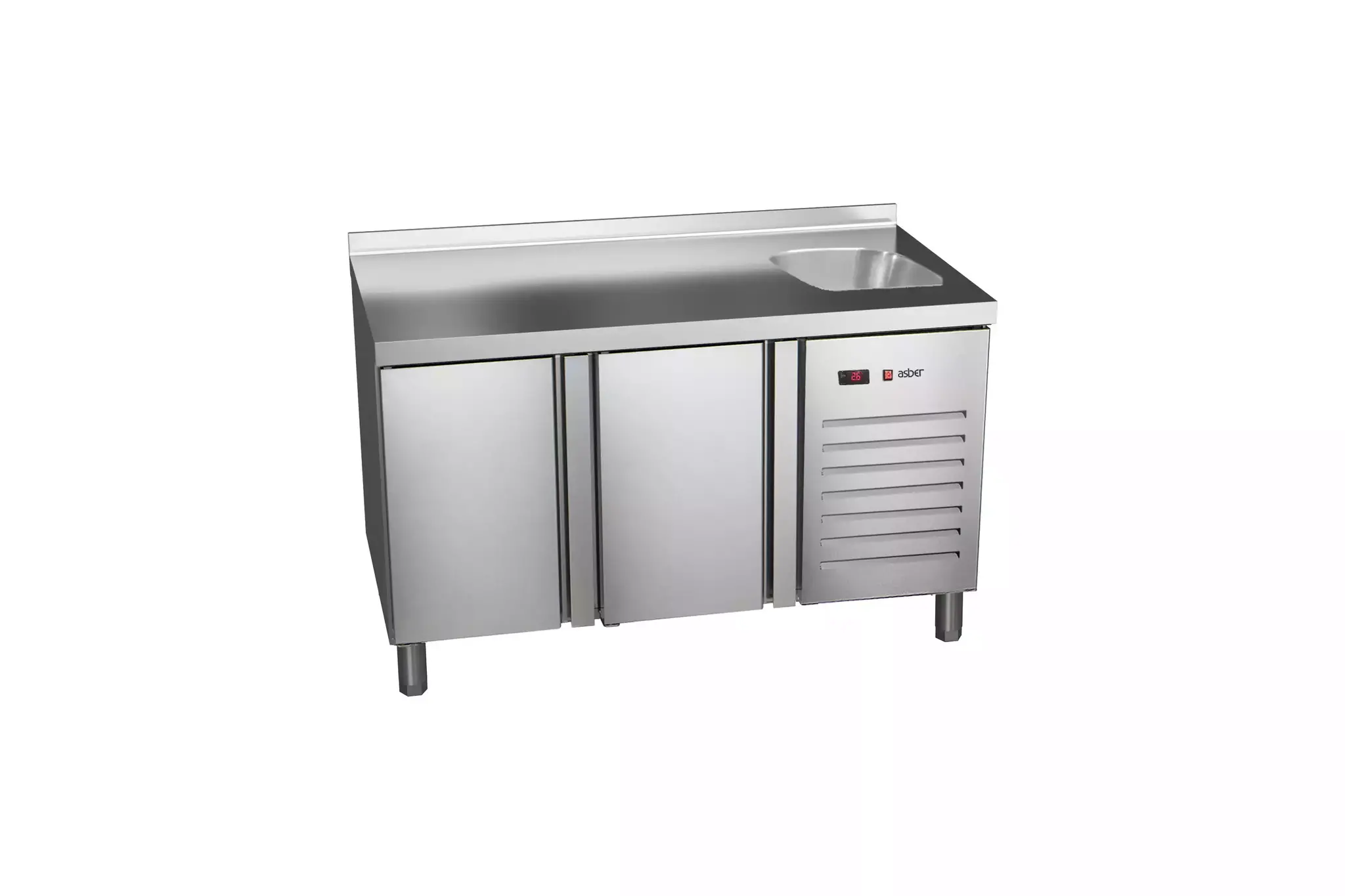 2-door cooling table with sink 253L, from 0 °C to 8 °C, side unit