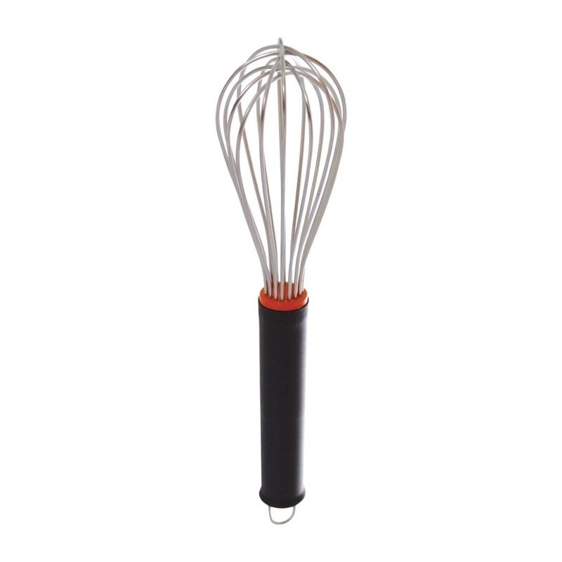 Strong stainless steel and polypropylene whisks with thermoplastic handle.