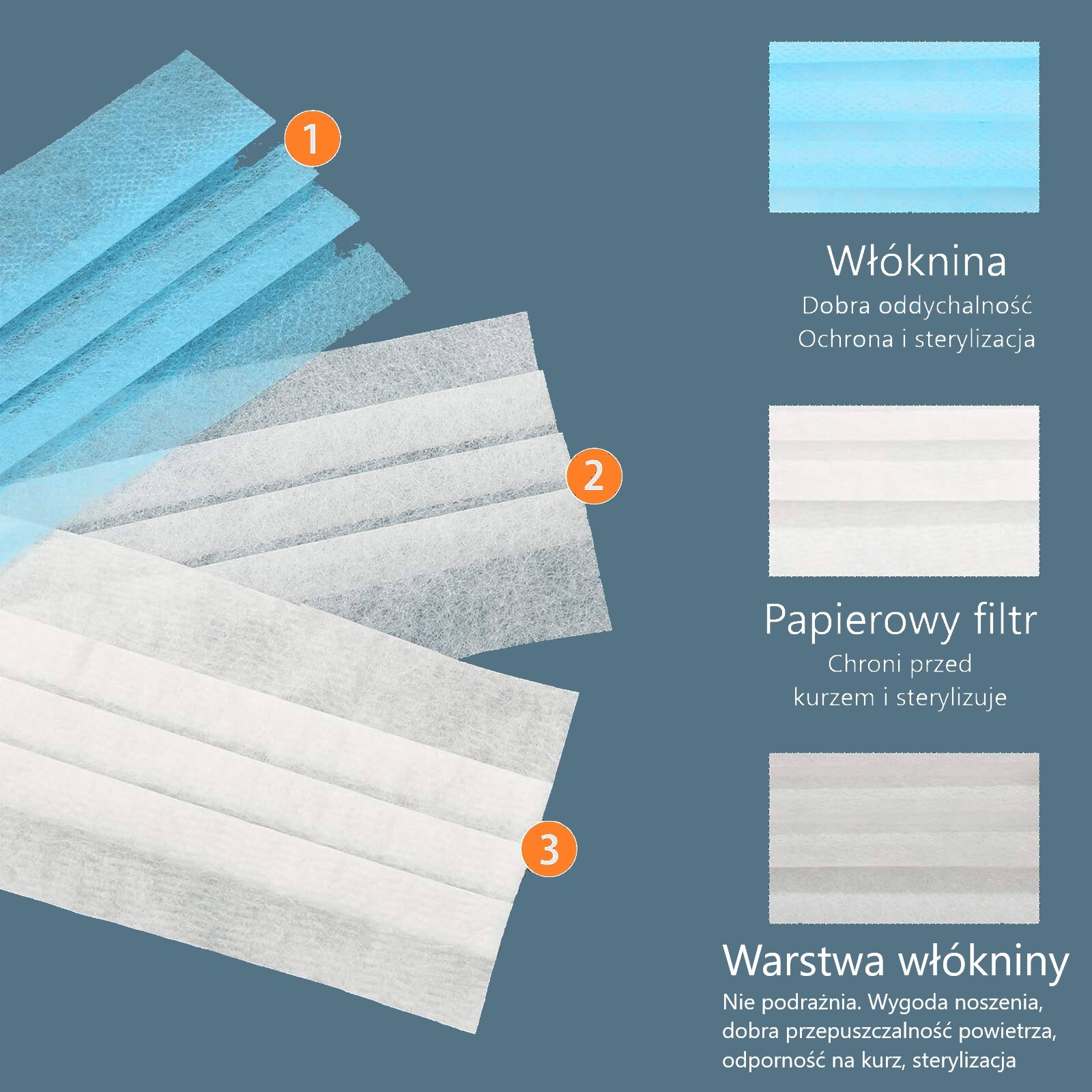 - 3 layers (waterproof non-woven fabric, a filter, a nonwoven)