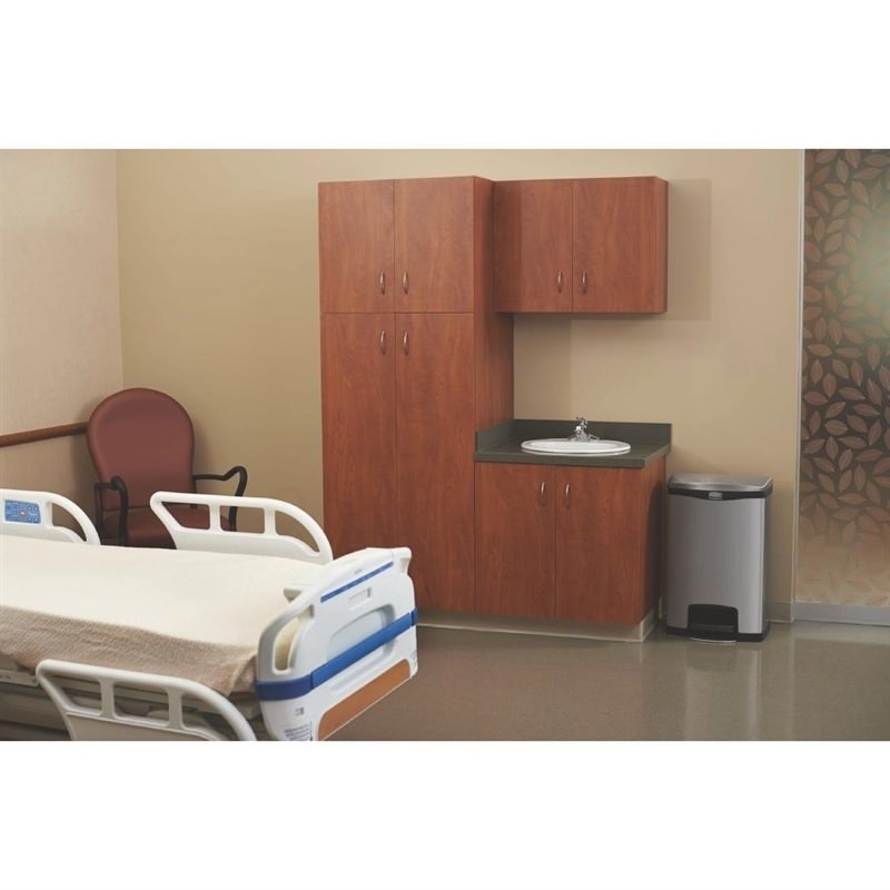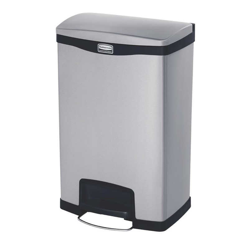 Built from strong stainless steel, the Rubbermaid Slim Jim® Step On containers are strong and easy to clean, standing up to even the busiest of kitchens. The metal casing is easy to disinfect and keep hygienic, and the foot operated design means germs are not transmitted from or to hands, perfect for use in in food preparation and kitchen environments that require a high level of cleanliness. A discreet design and small footprint ensures the waste bin is able to fit into smaller areas with ease, without compromising on quality or capacity.