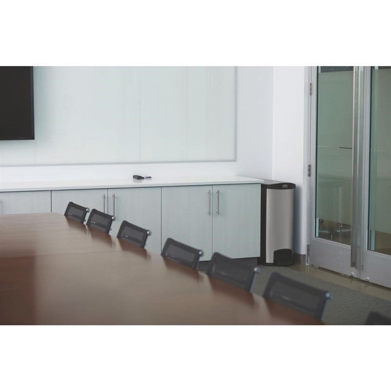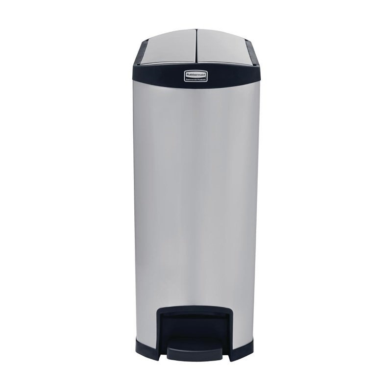Featuring a large 90 litre capacity, this stainless steel pedal bin from Rubbermaid is perfect for commercial waste disposal in kitchens and food preparation areas, with a foot operated lid that helps keep hands free from dirt and germs. The pedal lid closes quietly and tightly to reduce sound and lock in bad smells, helping you to maintain a pleasant environment for staff and customers. The small footprint of the Slim Jim bins means they can fit into small spaces and be discreetly placed to save space.