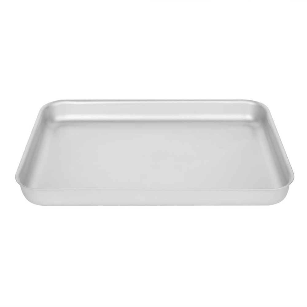 Easy to clean and durable, the Vogue aluminium bakewell pan is ideally suited for use in both domestic and commercial kitchens. Get the best baked delights with ease, thanks to a design that evenly distributes heat. With a 40mm deep wall construction, the tray keeps contents safe and secure, making it easy to move freshly baked foods from oven to display or serving areas.