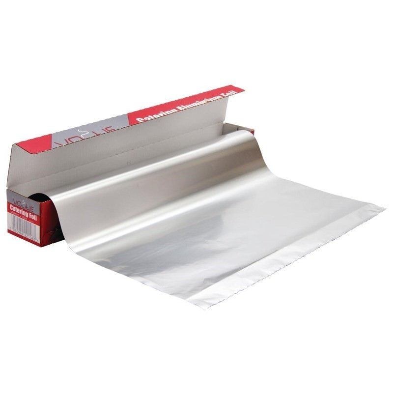 Supplied in a handy cardboard container with a serrated edge to make cutting to size as easy as possible, this aluminium foil from Vogue makes dispensing easy - ideal for quickly grabbing foil during busy periods in the kitchen.