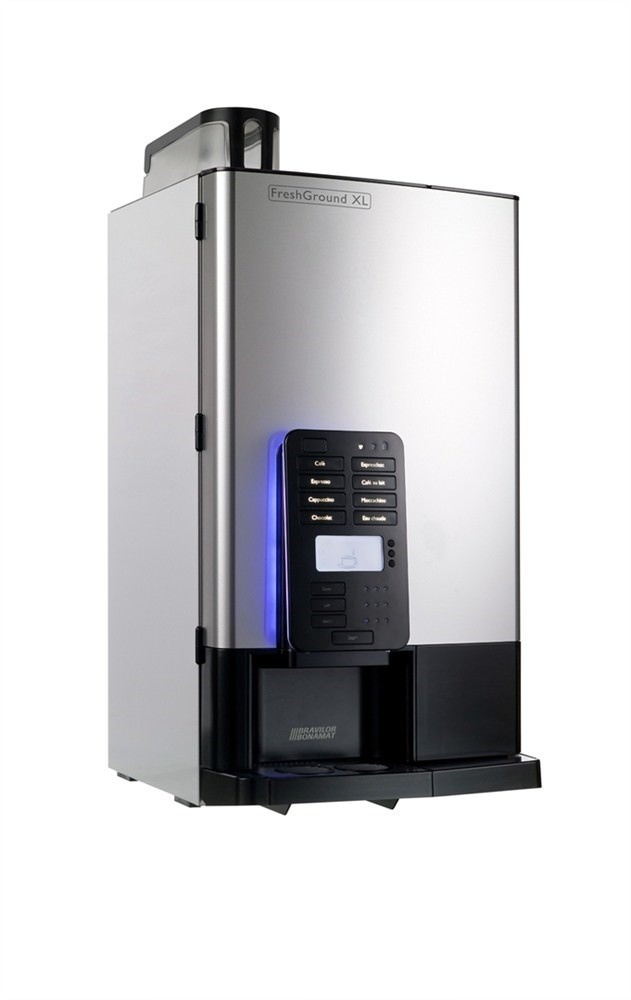 Provided with 5 canisters (one of which for the beans) for coffee, espresso, cappuccino, chocolate, coffee with milk, Wiener melange, espreschoc and hot water. With selection key for adding sugar and/or milk to the coffee. For locations with water connection. Additionally, the machine has been equipped with digital control, separate hot water tap, plastic drip tray, automatic descale indicator and rinsing programme. Also available in model with coin mechanism (C).