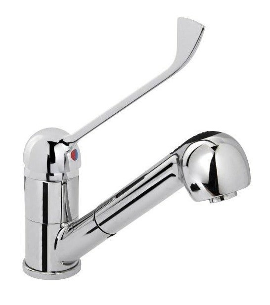 Stainless Steel Medical Deck Mounted Kitchen Faucet with Swivel Spout 230 mm and Pull-out Tap 1500 mm