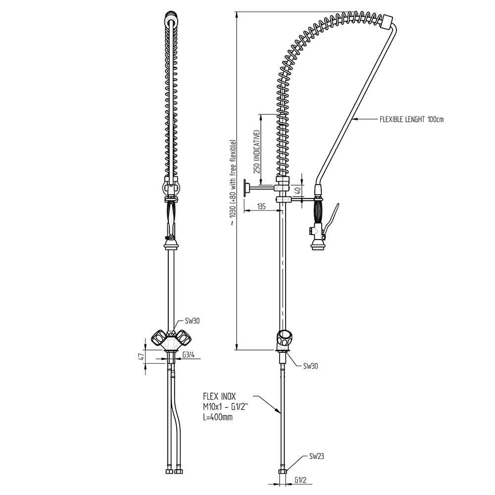 HomeHygiene & SafetyWarewashingCommercial Kitchen FaucetsBateria stojąca ze spryskiwaczem, pokrętłami, wysokość 1030 mm