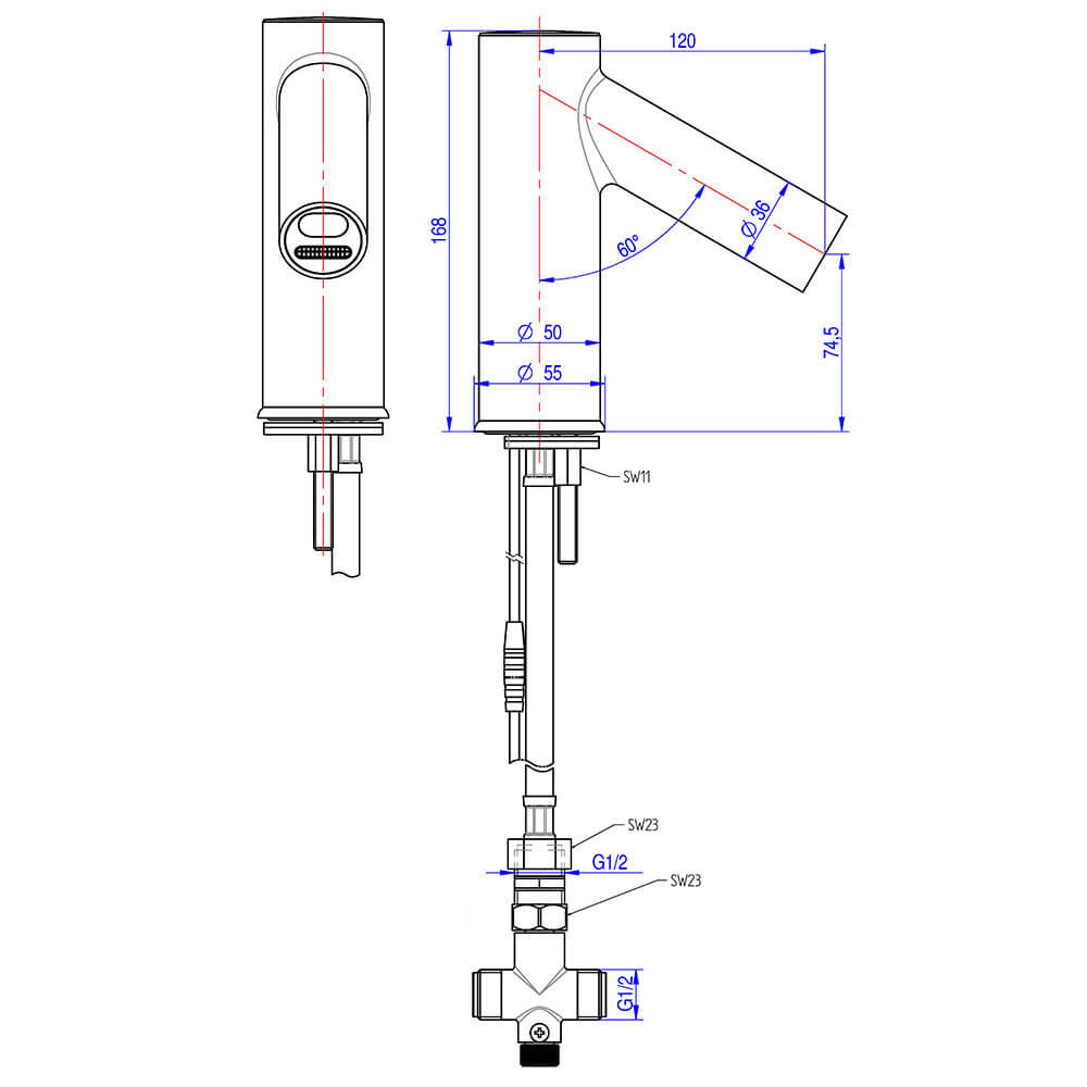 Bateria umywalkowa stojąca, 120 mm, przyłącze 1/2'' z czujnikiem na podczerwień
