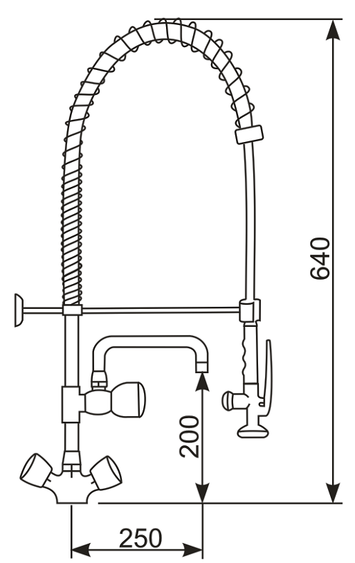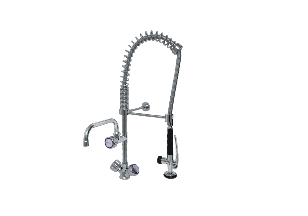 Single Hole Deck Mounted Pre-Rinse Faucet with "C" Type Top Spout and Knobs