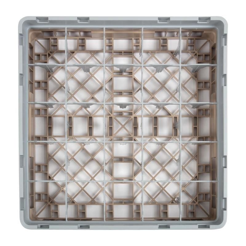Protect your glassware in transport with this 92mm high base rack with 25 compartments from Cambro, and save the expense of replacements. The rack is made from highly durable polypropylene which makes it highly resistant to high temperatures up to 93 degrees Celsius and cleaning chemicals.