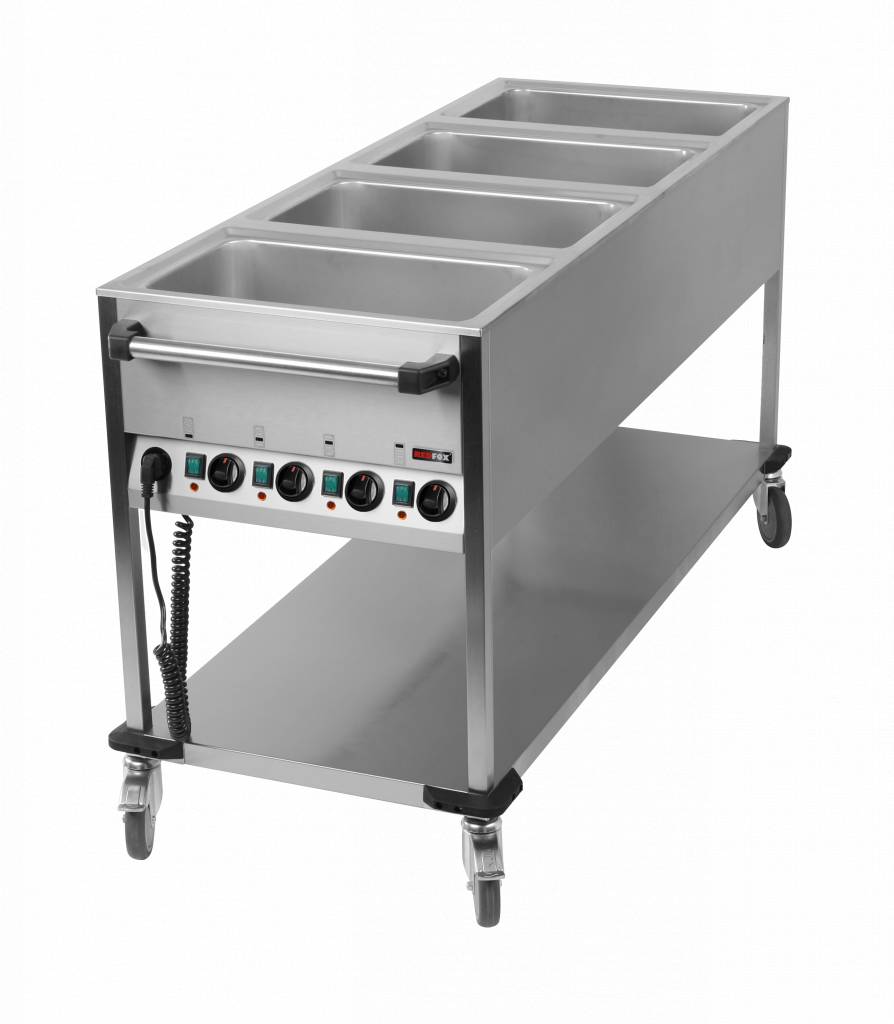 Mobile Electric Bain Marie, 4-Chamber with Drain Tap, GN 1/1, 2,8 kW