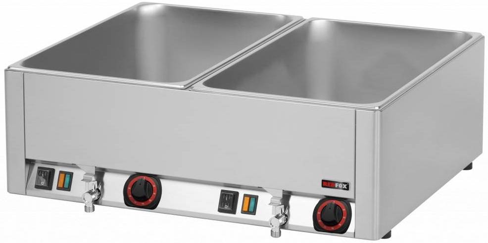 Countertop Electric Bain Marie, 2-Chamber with Drain Tap, 2 x GN 1/1, 3 kW