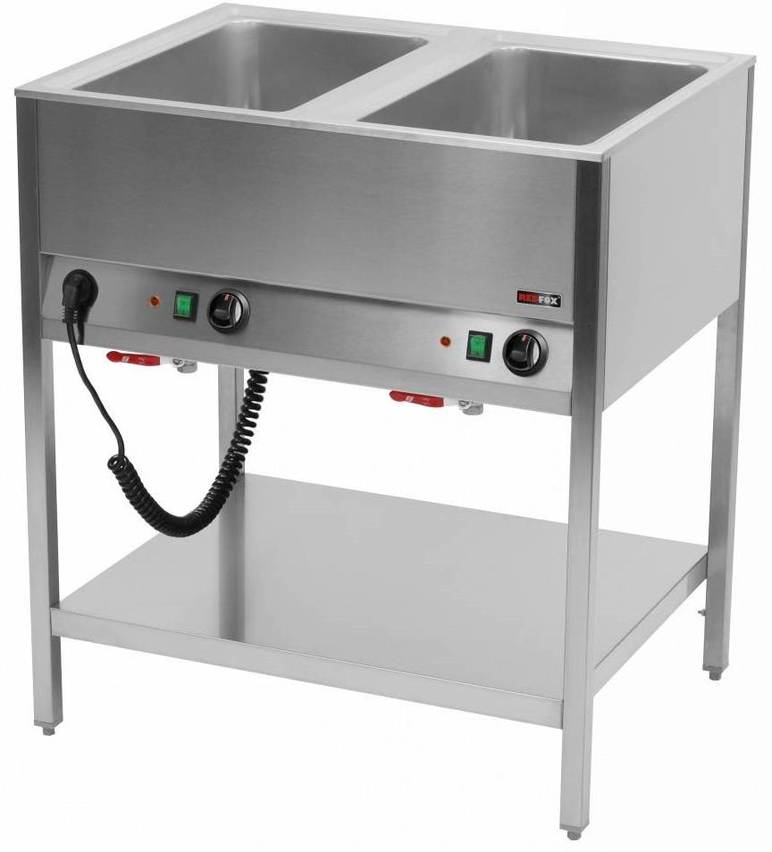 Floor model Electric Bain Marie, 2-Chamber with Drain Tap, GN 1/1, 1,4 kW