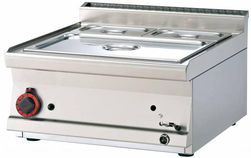 Water Water Countertop Gas Bain Marie, 1-Chamber with Drain Tap, GN 1/1 + 2 x GN 1/4, 4,5 kW