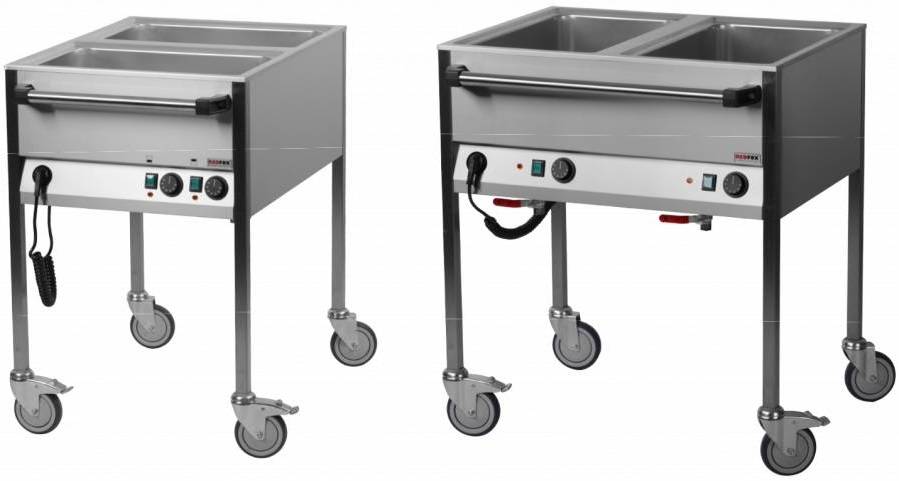 Water Mobile Electric Bain Marie, 2-Chamber with Drain Tap, GN 1/1, 1,4 kW