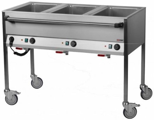 Water Mobile Electric Bain Marie, 3-Chamber with Drain Tap, GN 1/1, 2,1 kW