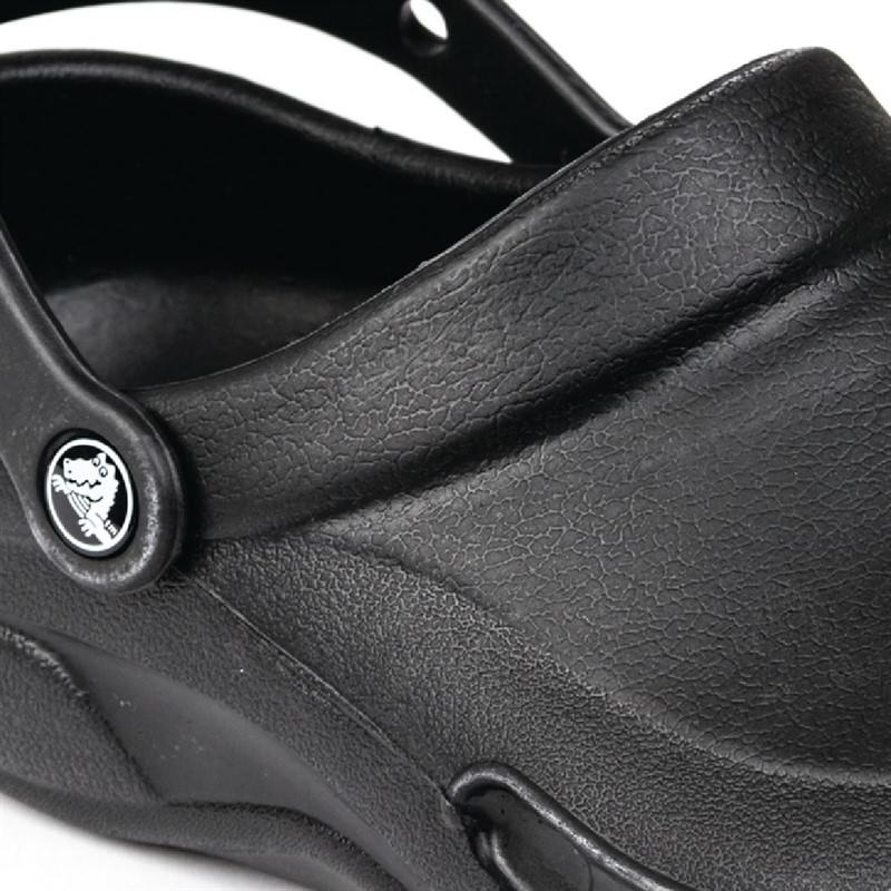 Specifically designed for the food service industry. Tested to EN ISO 20347, OB, SRC for slip resistance, enclosed toe and thicker top to protect feet from kitchen spills, and loose fitting so feet can bend and extend naturally. Easy to clean.