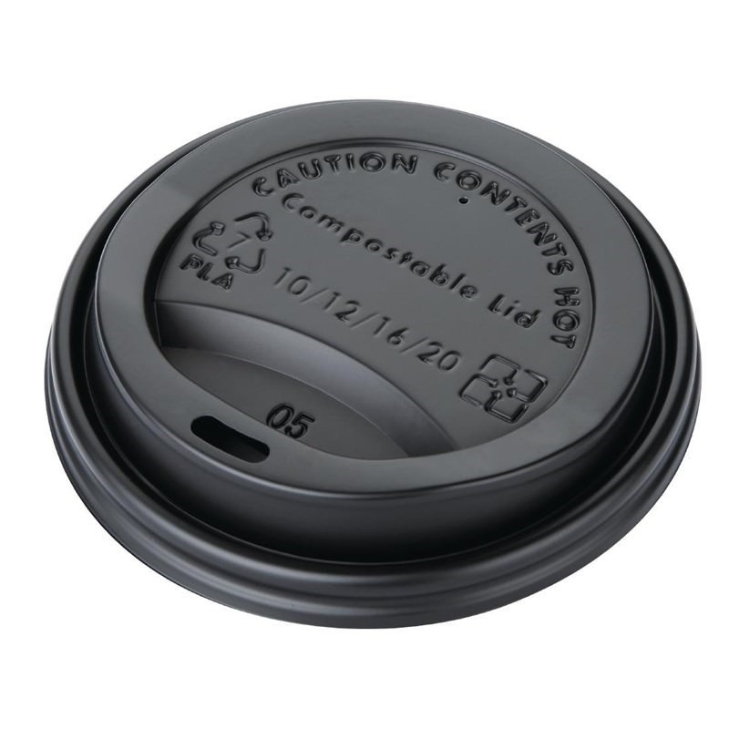 Black Compostable Coffee Cup Lids 340 ml (Pack of 1000)