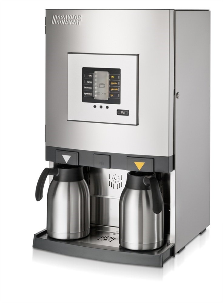 Provided with 4 large volume canisters for coffee, espresso, chocolate, espreschoc, cappuccino, coffee with milk, latte macchiato and hot water. For locations with water connection. Additionally, the machine has been equipped with digital control, plastic drip tray, double tap (to be used separately), automatic descale indicator and rinsing programme. Jug not included.