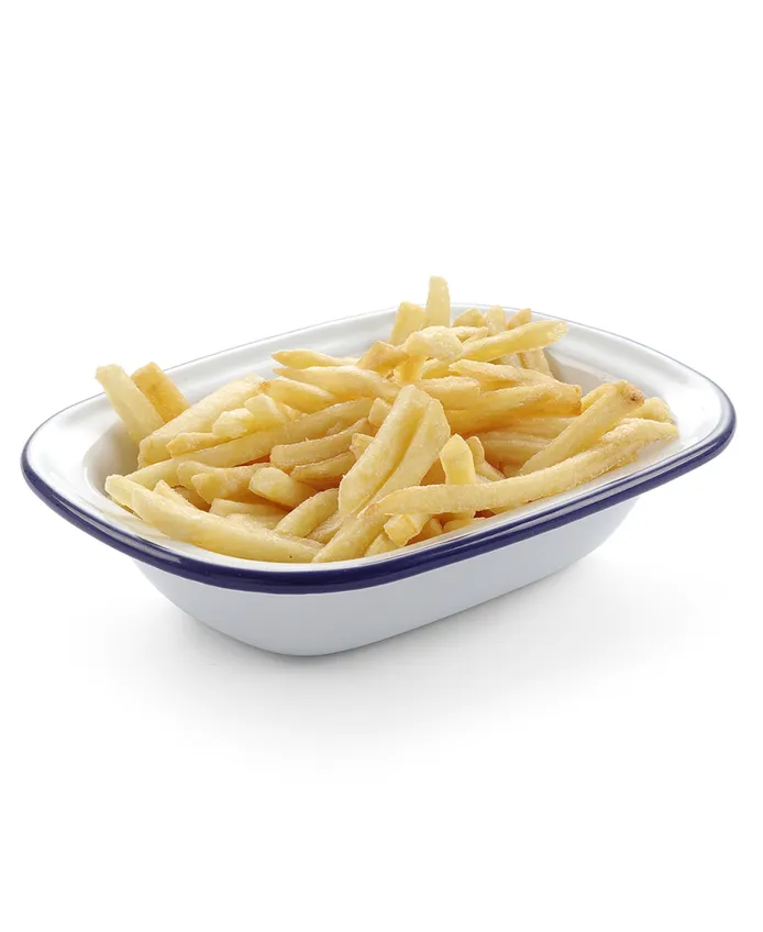 Enamelled tableware has made a comeback. White enamelled steel with a nice blue border. High quality enamel. Abrasion resistant.