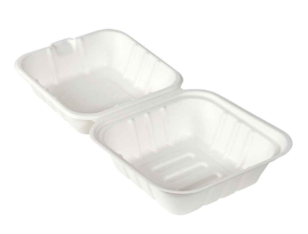 Box hinged bagasse 162x152x80 White (Pack of 200)