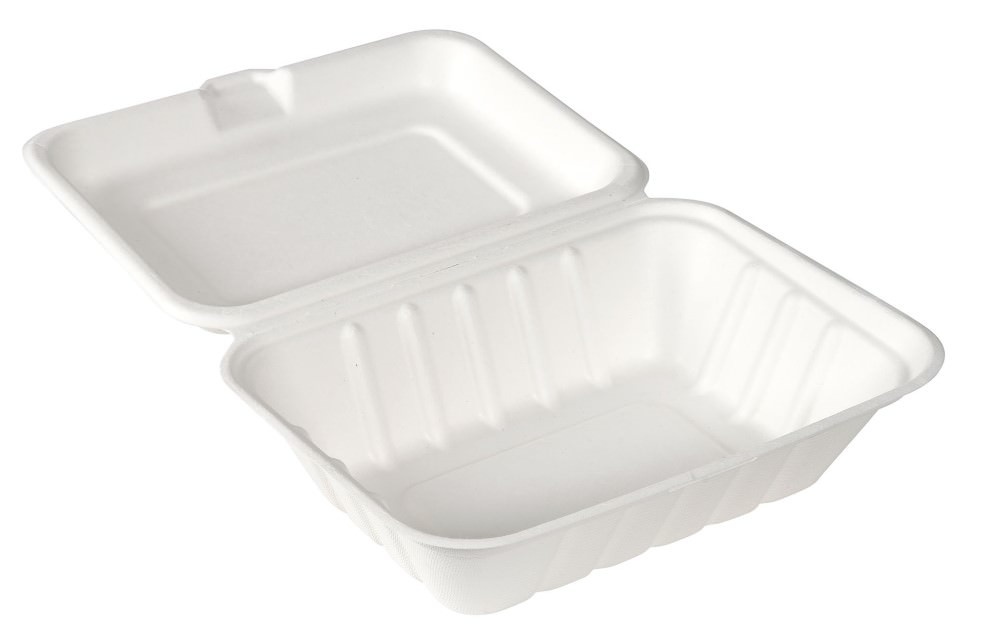 Box hinged bagasse 185x143x62 White (Pack of 300)