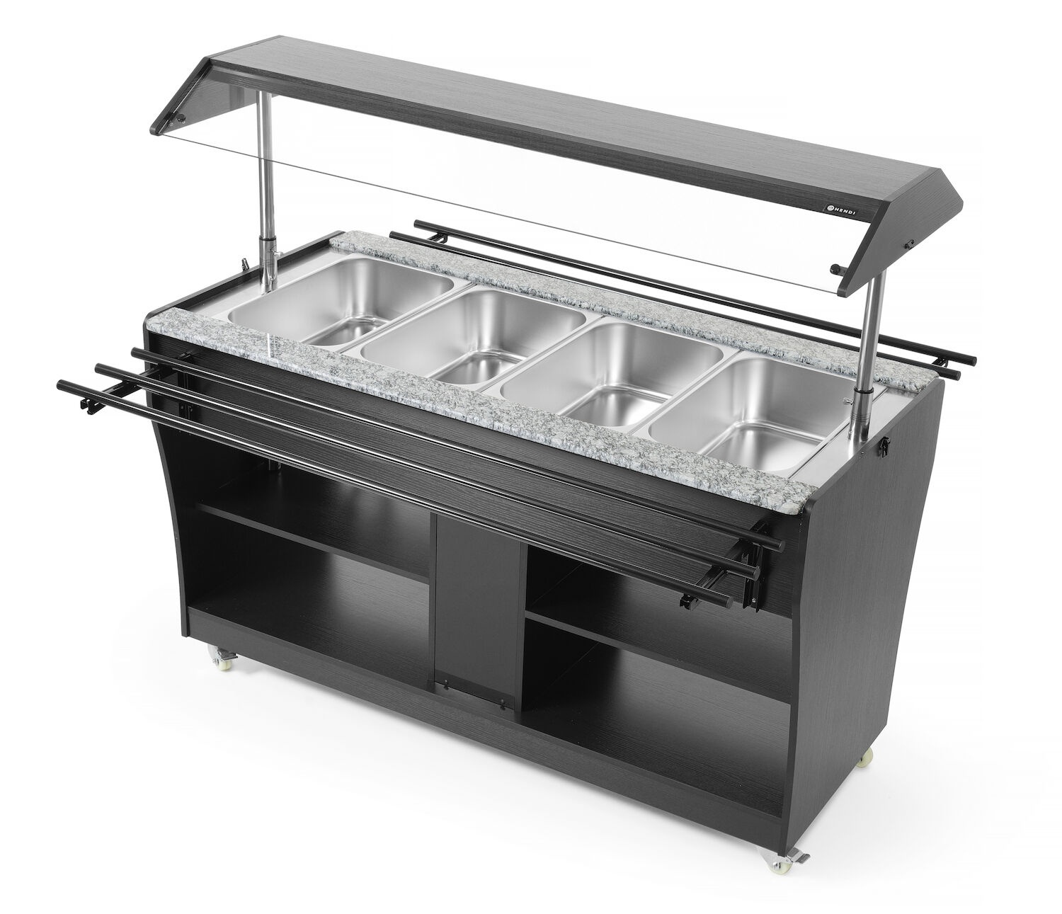 Bufet sałatkowy, grzewczy 4x GN 1/1 150 mm, od 30 do 90°C, czarny