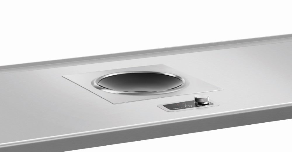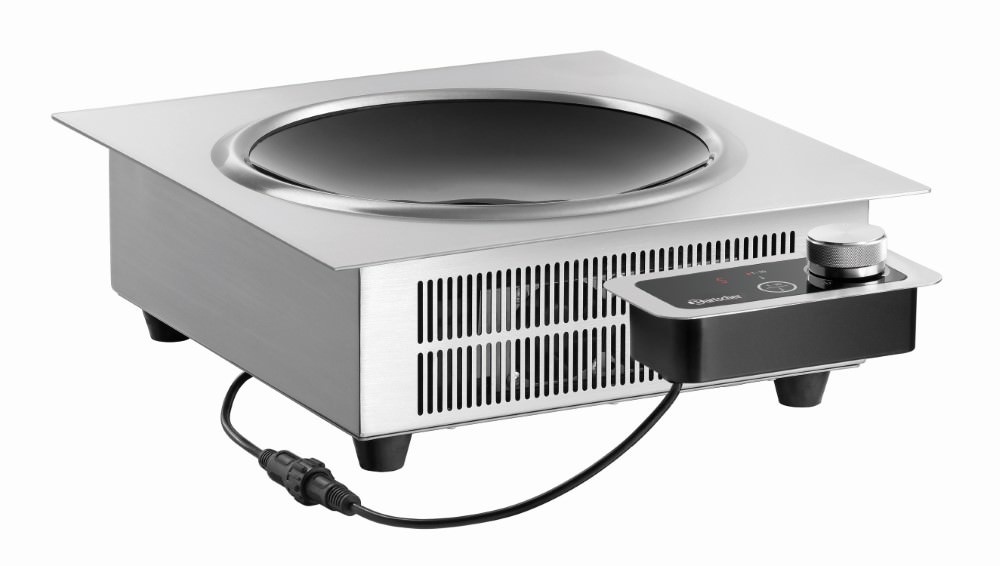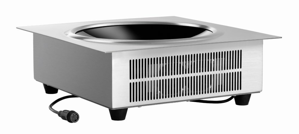 The integrated induction wok can be built into tables and worktops, providing an optimum working height. The separate control panel allows progressive control between 60 and 240 °C. Alternatively, 10 power levels are available to choose.