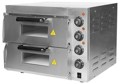 pizza oven stainless steel chambers in the bottom of chamotte. The device has an on / off switch, pilot light, timer 0-30 minutes, and safety switch. Each chamber has an upper and lower thermostat, the temperature control of 50 ° C-350 ° C.