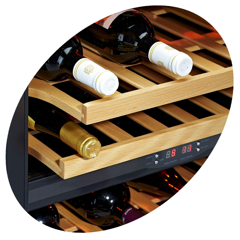 Chłodziarka na wino 1-drzwiowa, nastawna, drzwi uchylne 160L, 45 butelek 160W od 5 do 18°C 2-strefowa, srebrna
