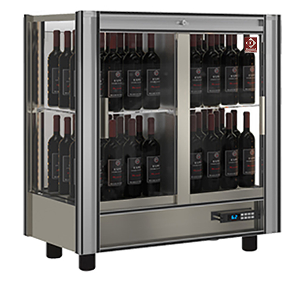 Chłodziarka na wino 2-drzwiowa, nastawna, drzwi przesuwne 530L, 64 butelek 400W od 4 do 16°C srebrna