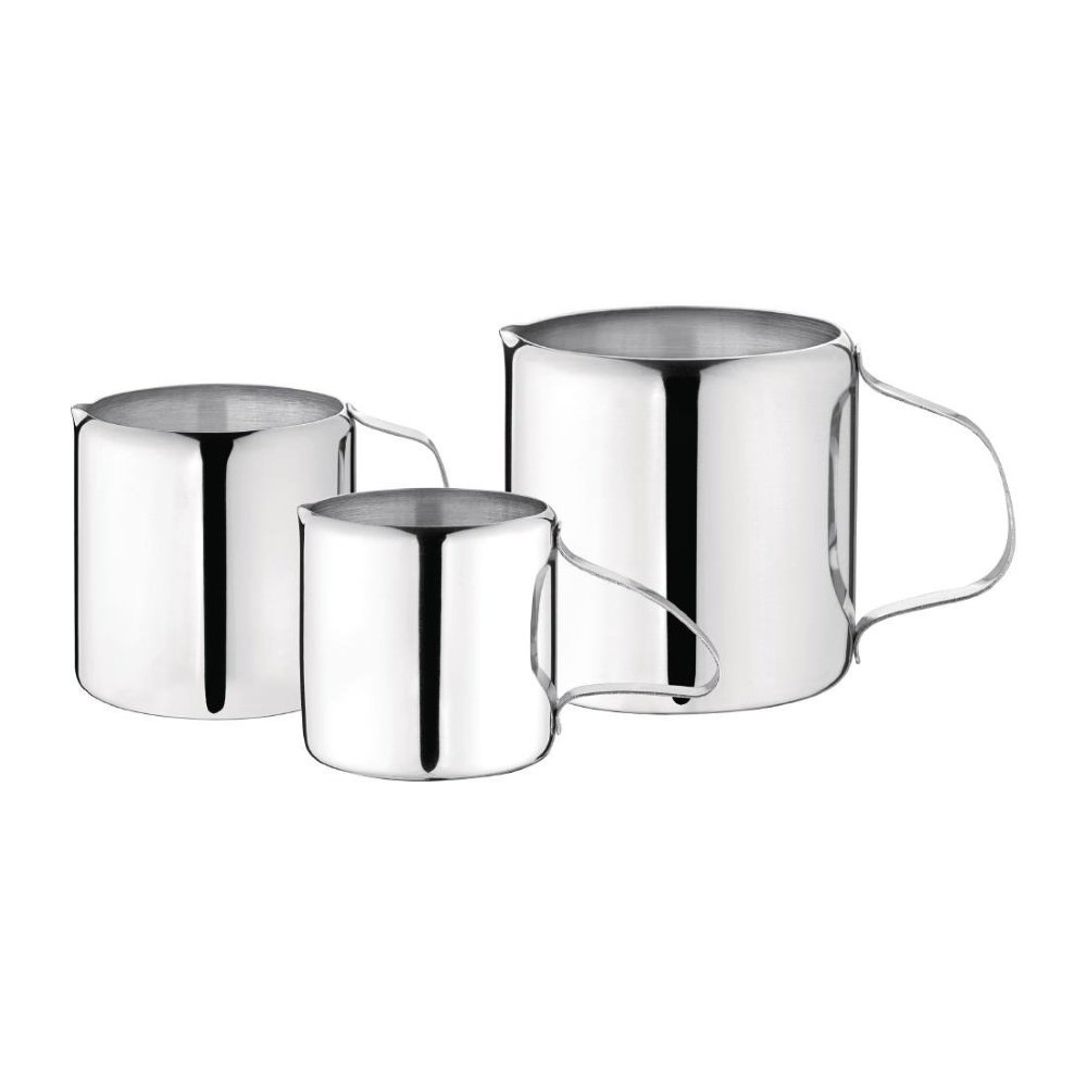 Add a touch of class to your beverage service with this 140ml Olympia Concorde stainless steel milk jug. The jug's gentle curves and mirror finish give it an elegant, eye-catching look that'll help you serve milk and cream with style. A heat-resistant handle keeps the jug cool to the touch too, so there's no risk of customers or staff burning themselves when handling hot liquids.