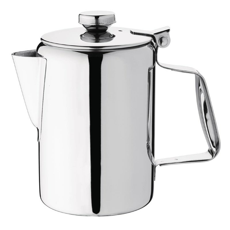 Bring a sleek look to your beverage service with this 20oz Olympia Concorde stainless steel coffee pot. The coffee pot's high-polish, mirror finish gives it an elegant, eye-catching look that'll help you serve hot drinks with style. The double-layer, heat-resistant handle keeps the coffee pot cool to the touch too, ensuring staff and customers stay safe when handling hot liquids.