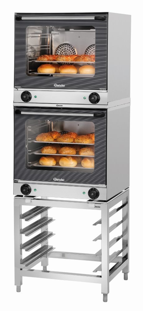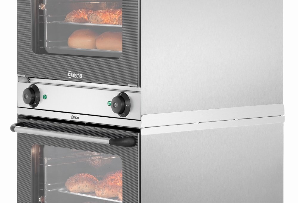 Space-saving and practical – the connecting frame enables the safe stacking of 2 AT90 or AT120 convection ovens. Screwed into place, slipping is not possible. This saves valuable space in the kitchen, and in petrol stations, kiosks or bakeries.