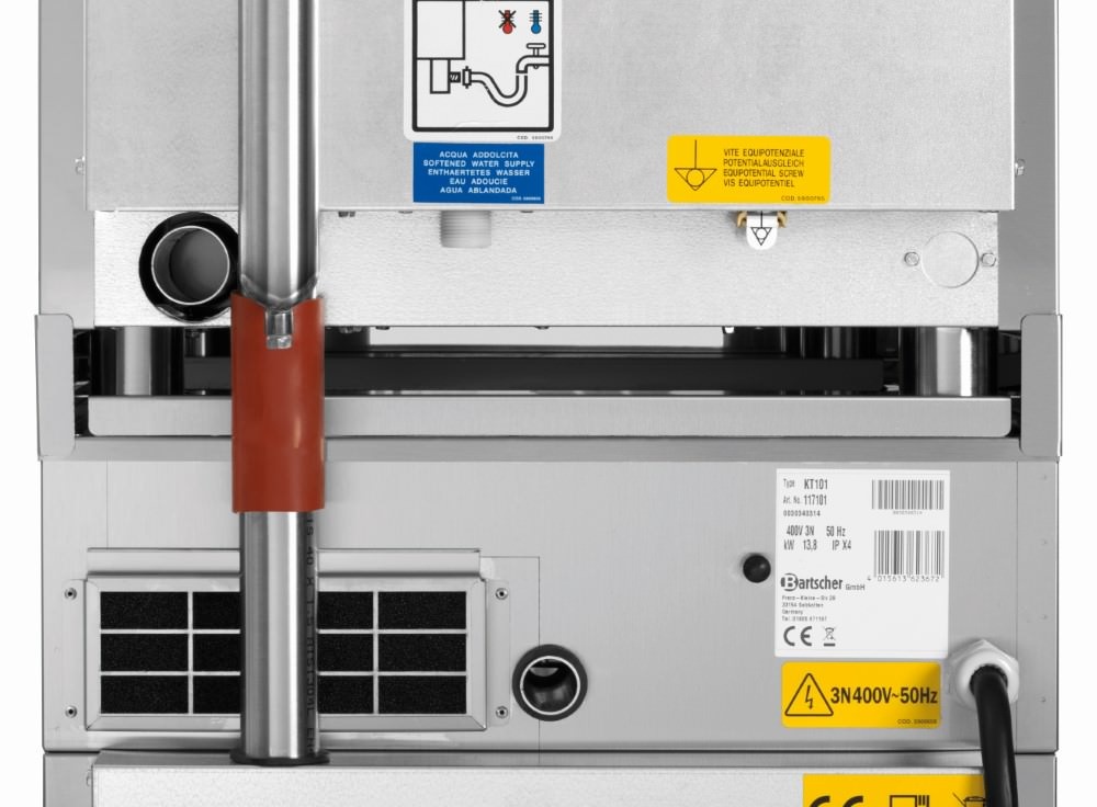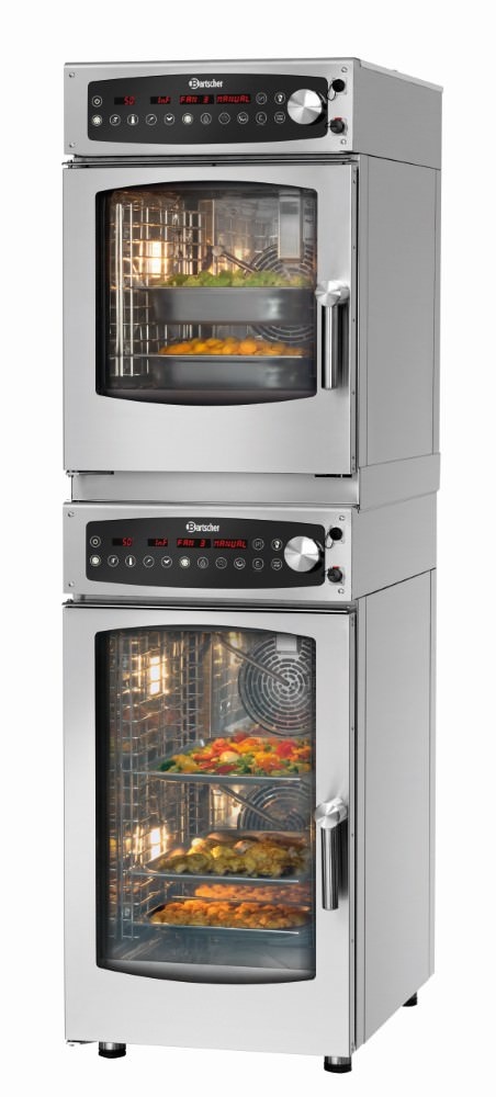 The space-saving solution: The connection kit allows 2 electrical combi-steamers 1/1 GN of the "Bartscher Compact" series to be stacked.