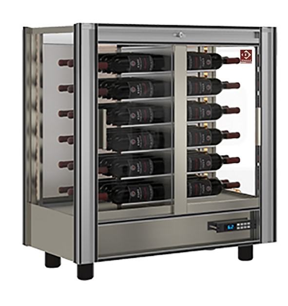Countertop 2-Doors Wine Cooler 216 L, 48 Bottlesm Modulable, from 4 °C to 16 °C, Sliding Doors, 6 Shelves, Silver