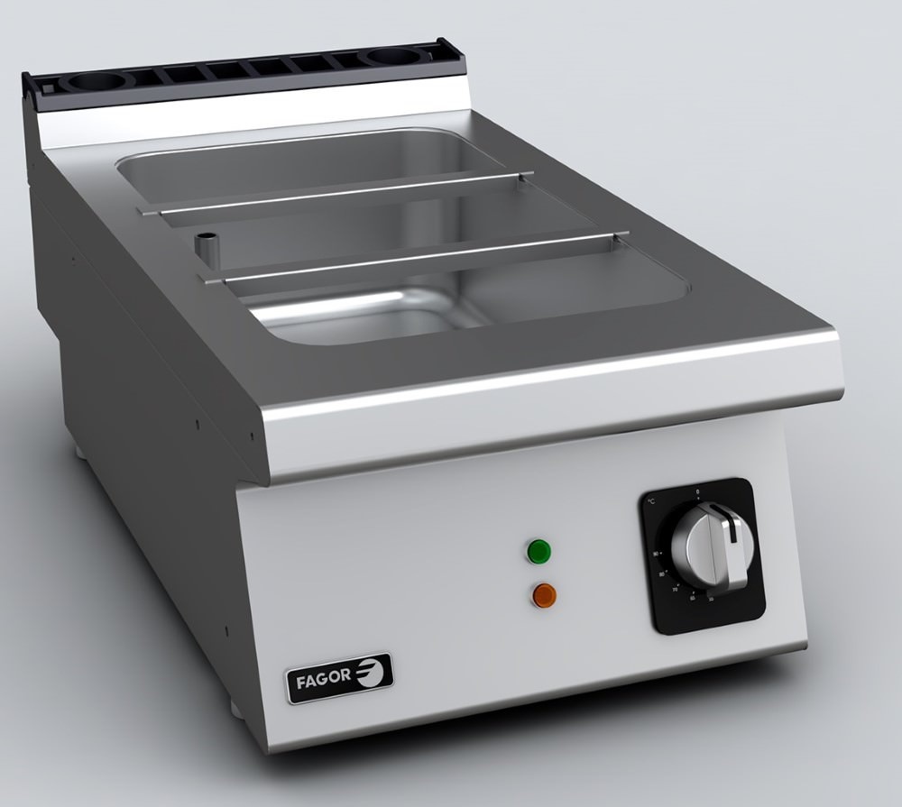 Top made of stainless steel AISI-304 having a thickness of 1.5 mm. The recesses of stainless steel AISI-304 built-in countertop surface. Gravity Drainage: by the removal of a simple drainage tube przelewowej.Termostatyczna control the water temperature from 30 to 90 ° C Control of the base and the protective system to prevent overflow of water (IPX5 protection). Model Electric: Heating elements made of stainless steel AISI 304 placed on the outside of the tank safety thermostat. The reservoir, which can be used with different types of Gastronorm containers of various sizes, height 150 mm and the following dimensions: GN 1/1, with a capacity of 17 liters. In addition to 2 guides for handling containers Gastronorm.Specifications