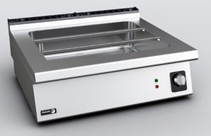 Top made of stainless steel AISI-304 having a thickness of 1.5 mm. The recesses of stainless steel AISI-304 built-in countertop surface. Gravity Drainage: by the removal of a simple drainage tube przelewowej.Termostatyczna control the water temperature from 30 to 90 ° C Control of the base and the protective system to prevent overflow of water (IPX5 protection). Model Electric: Heating elements made of stainless steel AISI 304 placed on the outside of the tank safety thermostat. The reservoir, which can be used with different types of Gastronorm containers of various sizes, height 150 mm and the following dimensions: GN-2/1, with a capacity of 30 liters. In addition to 2 guides for handling containers Gastronorm.Specifications