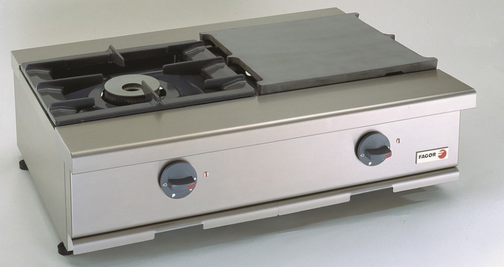 Topcoats burners with safety valve and thermocouples. Grill, hot plates and burners made of cast iron. The pilot flame control. Gutters drip into fat burners, easily removable, which are an integral part of the device. Torch: 1 x 6.5 x 1 kW and 4.41 kW plateSpecifications