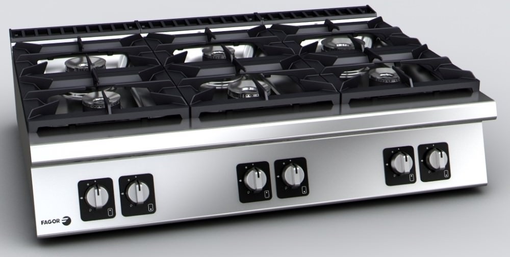 6 burners dwukoronowej construction, providing high power and high efficiency. Grids and burners made of cast iron. Topcoats burners with safety valve and thermocouples. Drip pan with a capacity of 1.5 dm3 of the hotplates (1 pan burner 2), easily removable, being an integral part of the device.Specifications