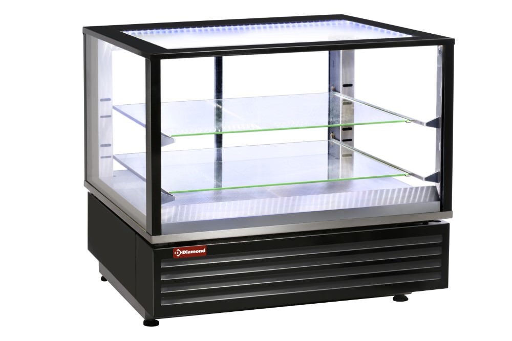- 2 presentation shelves (removable) made of tempered glass (0.4 mm). - Sliding doors on the service side, removable (easy to maintain).