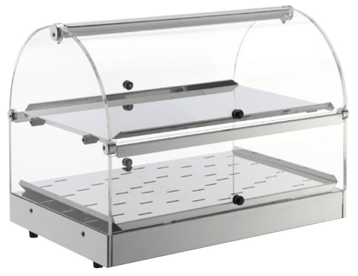 Countertop Pastry Warming Display 2-Level, 0,50 kW, from 30 to 70°C, with Bent Glass, Silver