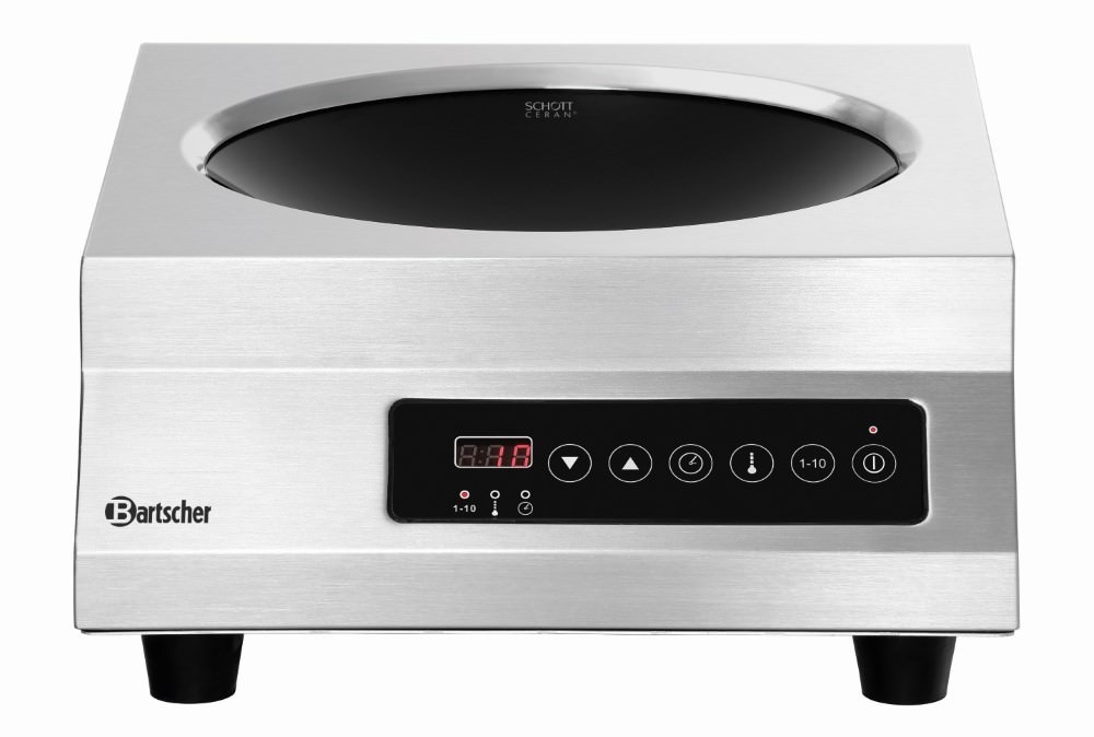 The portable induction wok with 3500 watts and 10 power levels offers full flexibility. Visually, it impresses with the high-quality SCHOTT CERAN ® hob and the touch control panel with digital display.
