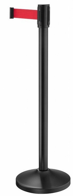 HomeFurnitureBarrier SystemsCzarny słupek odgradzający taśmowy | wys. 990 mm | taśma czerwona 2000 mm