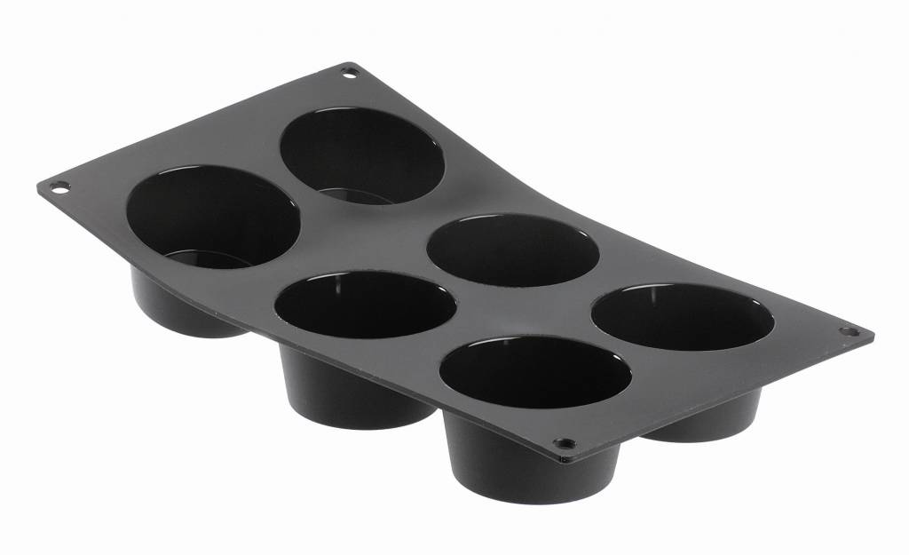 Moul'flex of 6 individual muffins ideal for making traditional muffins, chocolate fondants and various other sweet or savoury preparations, hot or cold. Black mould : absorbs heat and distributes it evenly; very good caramelisation of pastries. High quality pure platinum silicone : very flexible mould ; guaranteed peroxide-free. Sturdy : withstands temperatures from -40°C to +280°C. Smooth inner surface: natural non-stick and easy turning out. Grease before first use. Baking in a traditional oven, microwave oven or bain-marie. Do not heat with empty forms. Do not place under a grill. Do not use sharp objects on the tray. Tip: put the mould on a grate or a perforated baking tray for a better flow of hot or cold air. Care : hand washing recommended.