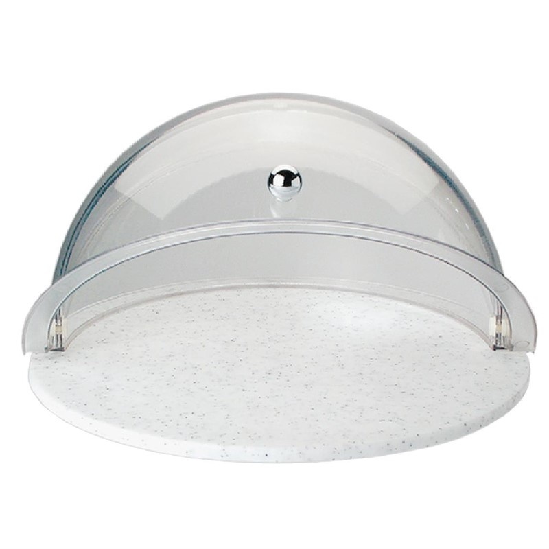 This roll top covered board is an elegant and stylish way to present food on buffets or tables. The impressive marble effect board will enhance your foods and delight your guests. The lid is easily to lift with the silver ball handle, rolling backwards smoothly and effortlessly. The clear plastic of the lid allows for quick and easy identification of contents, saving you time when you're busy. The flat base of the board makes it very stable, reducing the risk of it falling over and getting damaged.