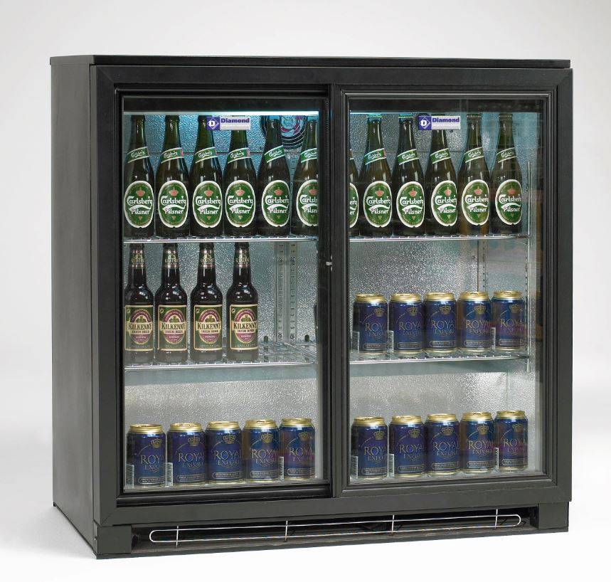 Double Sliding Doors Back Bar Cooler 191 L, from 2 °C to 10 °C, Black