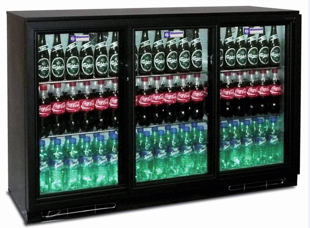 Triple Sliding Doors Back Bar Cooler 300 L, from 2 °C to 10 °C, Black 240 Bottles