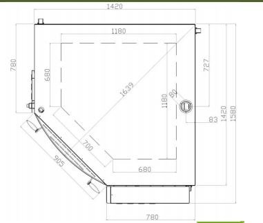 - 2 chambers 1180x1180xh160 mm (11,7 kW)
