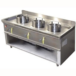 Gas Wok Cooker with 3 Burners and Open Cupboard, 55305 kcal / h